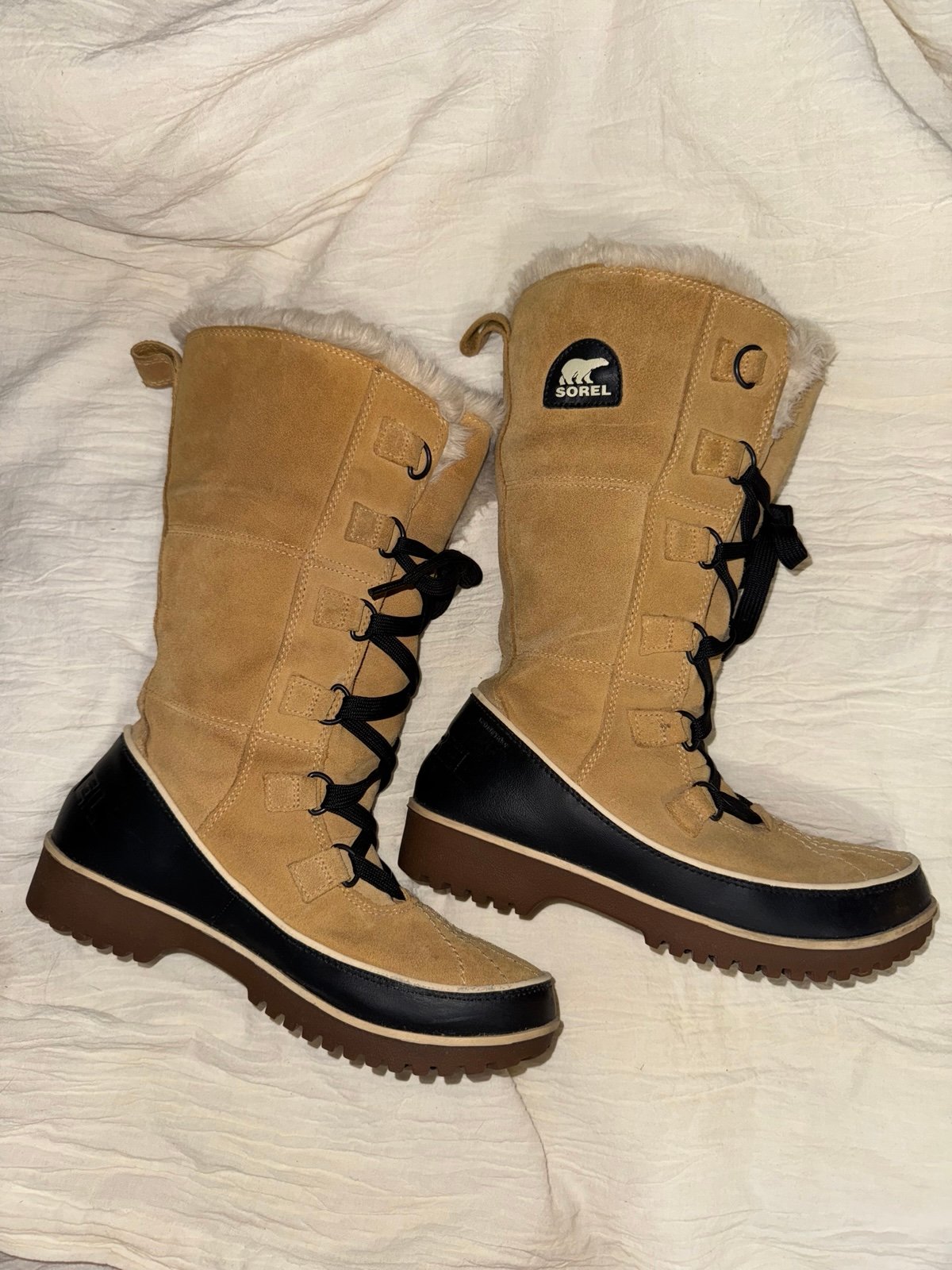 Sorel women's 'Tivoli High II'. An eye-catching knee high silhouette for navigating in the snow or après anything. All-over waterproof suede leather upper is breathable, insulated, and lined with soft microfleece. Outsole color in black and cream colored faux fur edging add style to this snow boot.