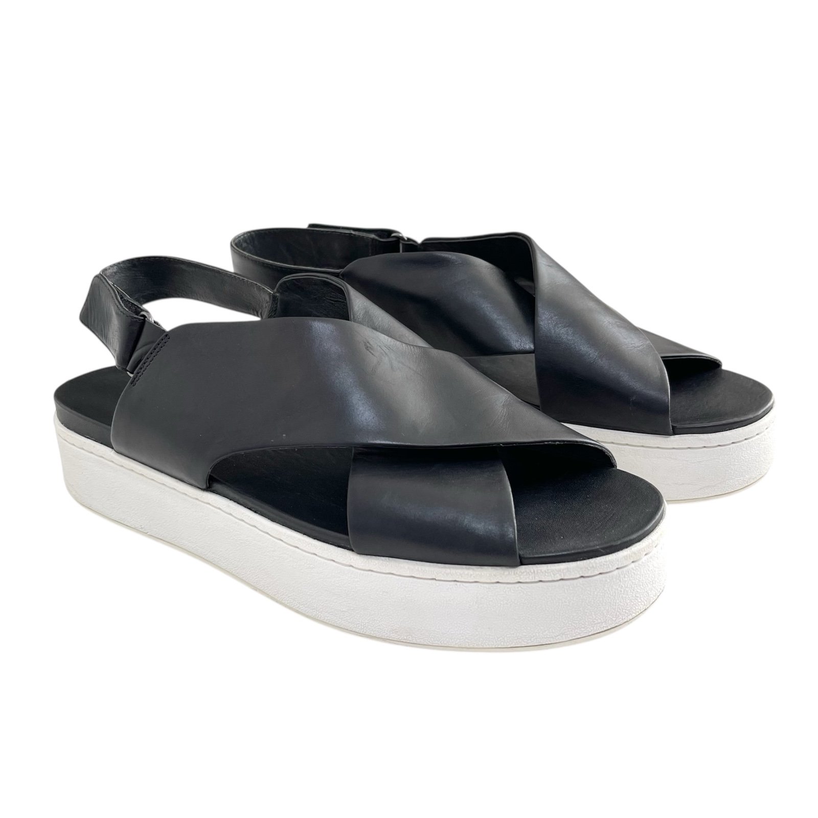 Bold, simple cross straps bring a classic warm-weather look to a silngback sandal lofted high on a slightly chunky flatform sole.